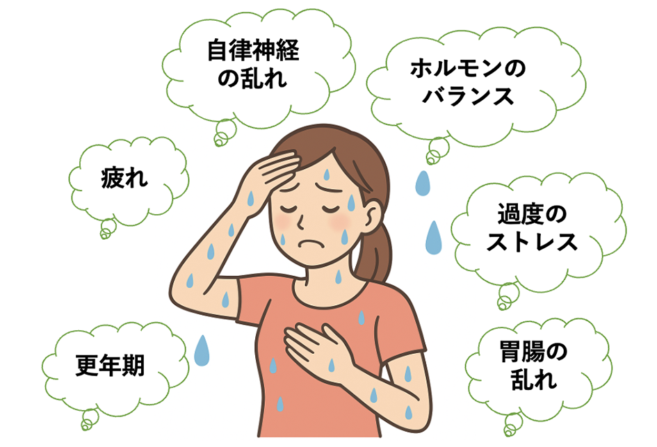 こうした「汗のトラブル」は、体質や自律神経、ホルモンバランス、胃腸の働きの乱れなどと深く関係しています。